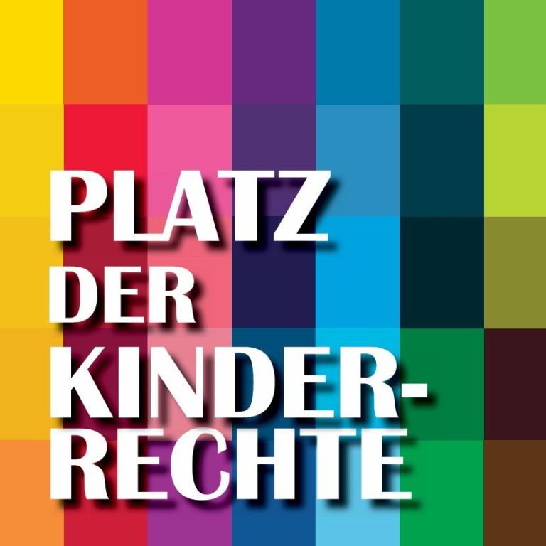 Eine farbenfrohe Stellwand macht die UN-Kinderrechte sichtbar und lädt Kinder und Jugendliche ein, ihre Stimmen einzubringen und den Platz aktiv mitzugestalten